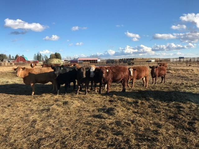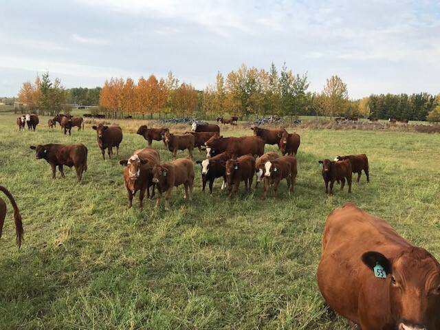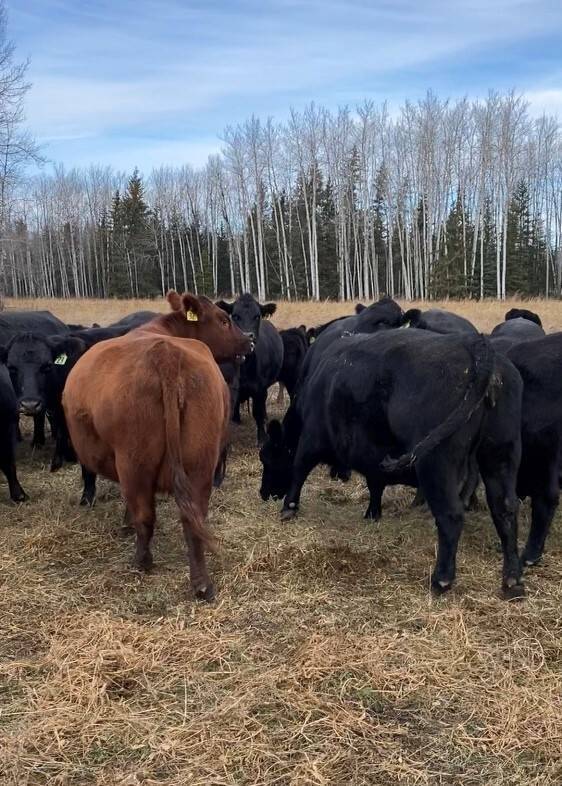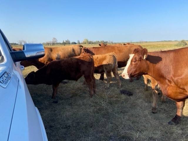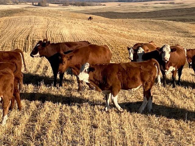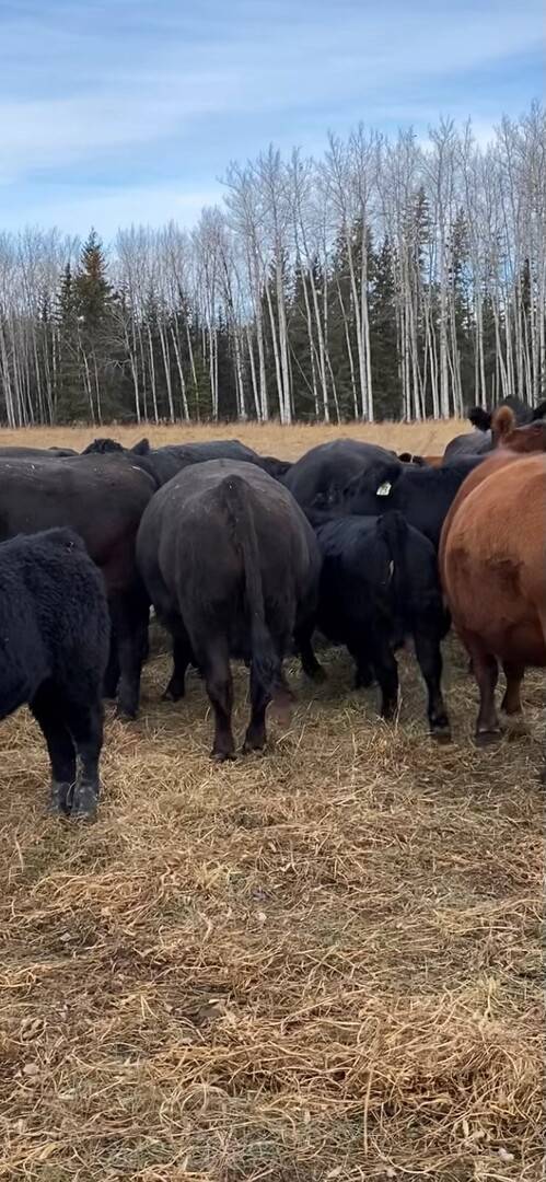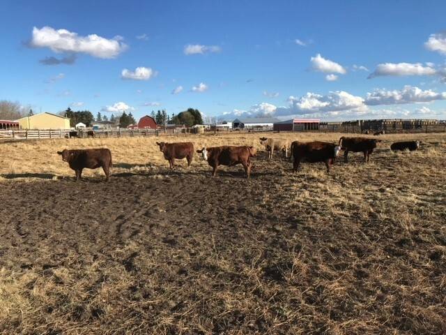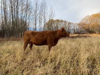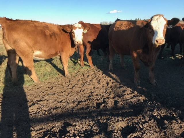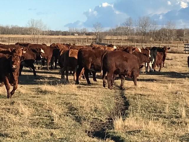 136 Simmental/Angus cross cows bred back to simmental and red angus bulls to start calving Feb 1st. Cows have had Viralshield 6, Ivermectin and Scour Bos 9 Oct 15th.