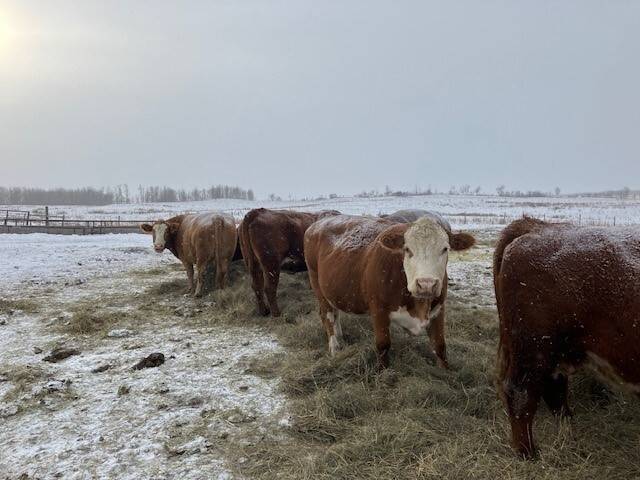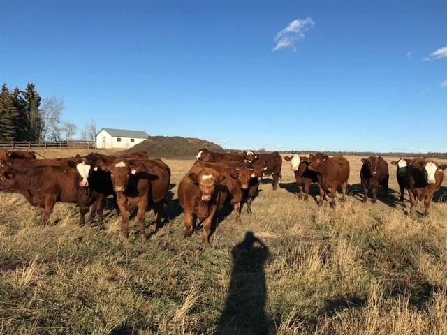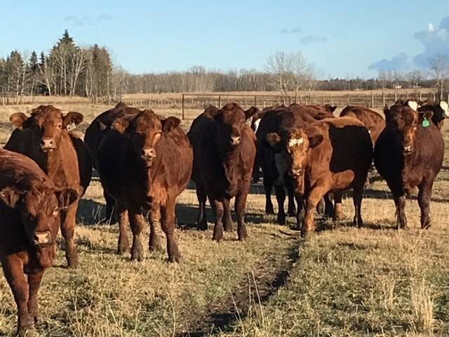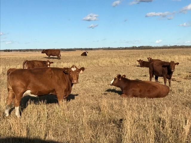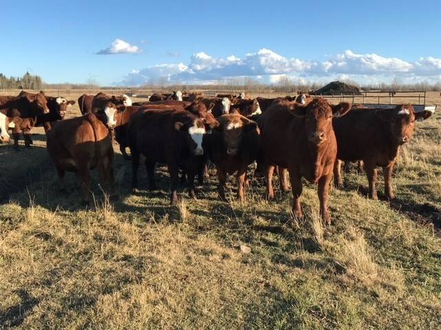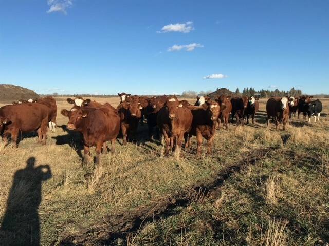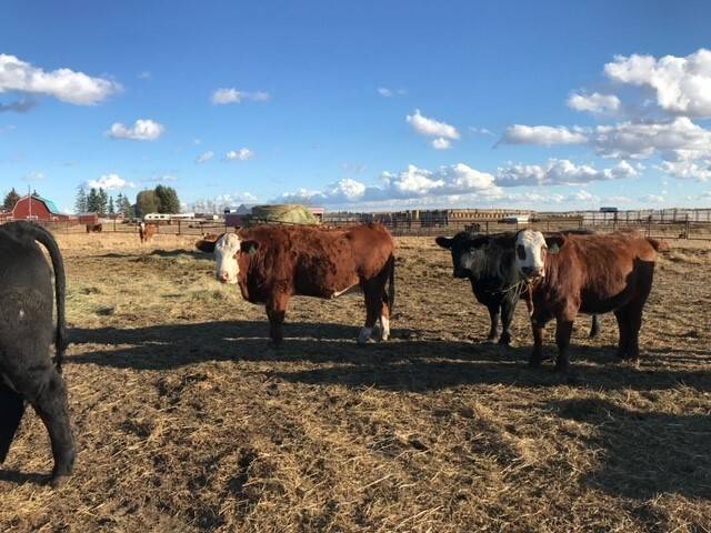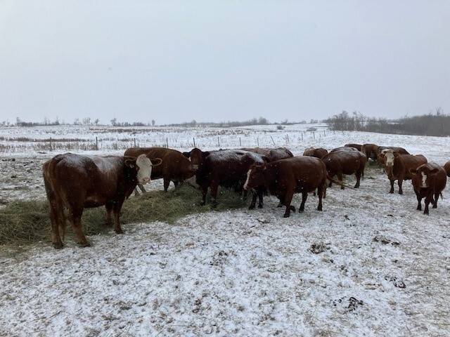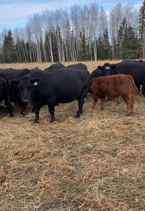 136 Simmental/Angus cross cows bred back to simmental and red angus bulls to start calving Feb 1st. Cows have had Viralshield 6, Ivermectin and Scour Bos 9 Oct 15th.