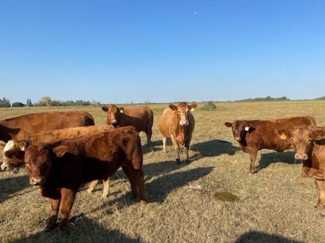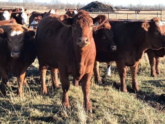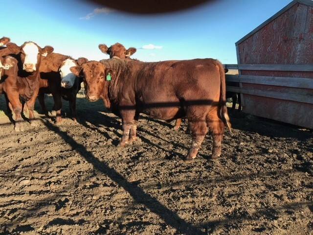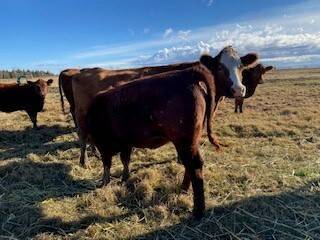 70 bred hfrs 3/4 red simantal and 1/4 angus big bodied hfrs bred back to red angus bulls home raised,full herd health calving feb 6th