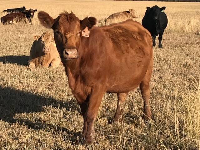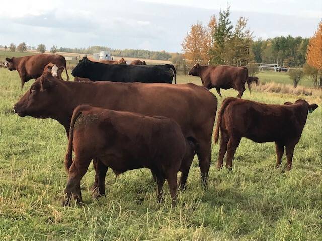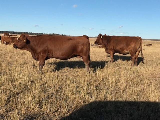 80 red angus/ simmental cross cows.