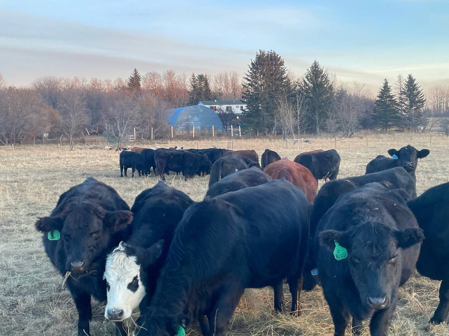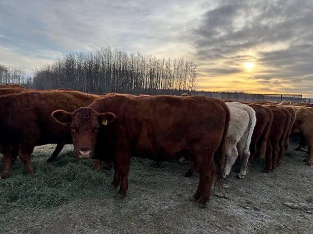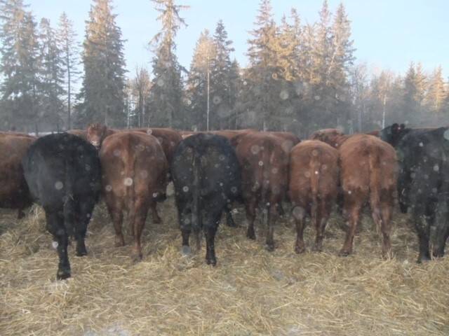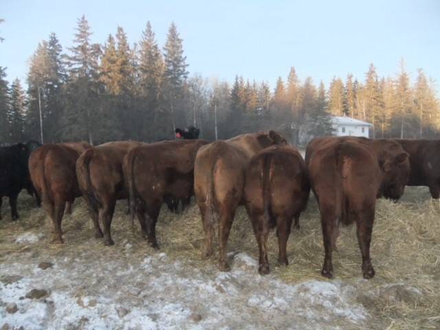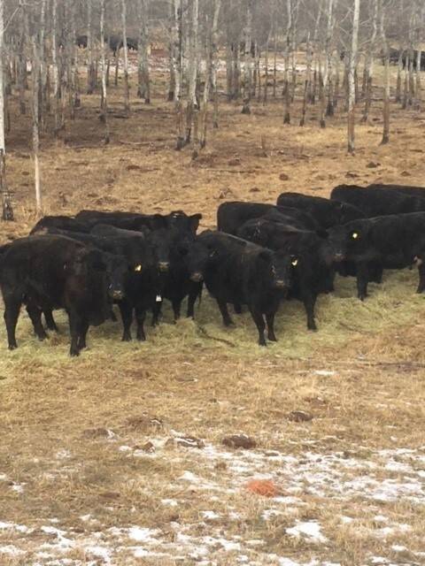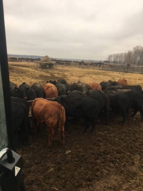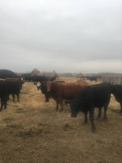 Young quiet herd of mostly red and blk angus cows. Bred to red angus bulls. Start calving February 15. Bulls pulled first week of September.
