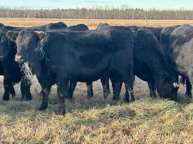 35 homeraised Angus/simm cross Heifers bred back to red and black angus bulls to start calving February 10 . A Nice big set of heifers that will weigh 1100-1200lbs , Full herd health