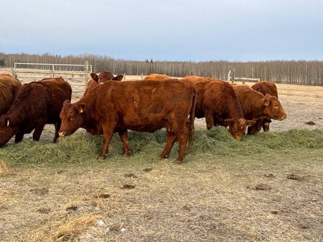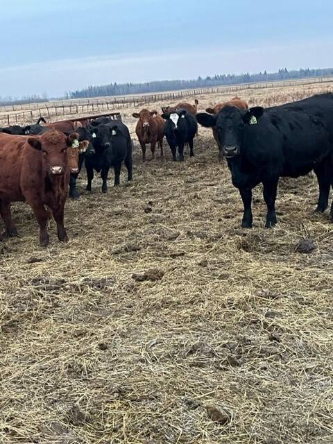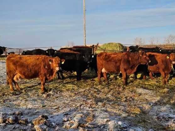 40 Red & black cows bred to Simmental bulls to start calving April 1st.