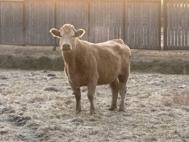 Exposed to pure bred red Simmental bull 74 lbs birthweight bull turned out June 23rd , should start calving mid April full herd health program, 8way, ivermectin, cattlemaster, scourgaurd fed grass and hay , quite used to kids ,dogs , tractors , electric fence.