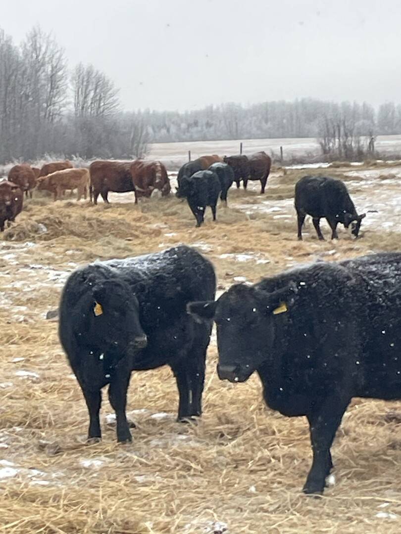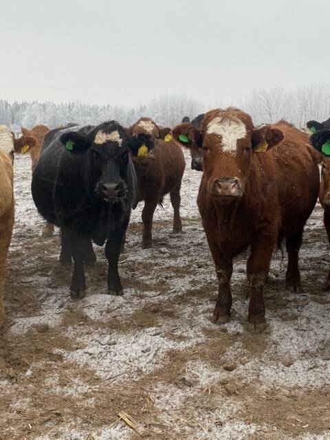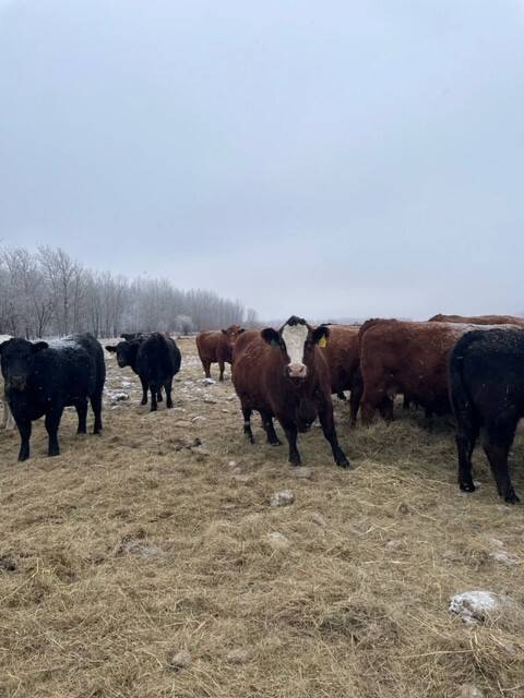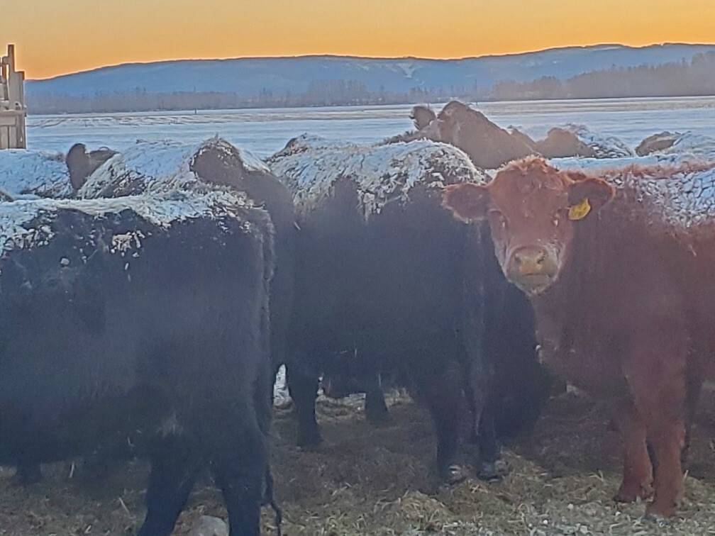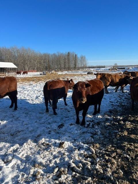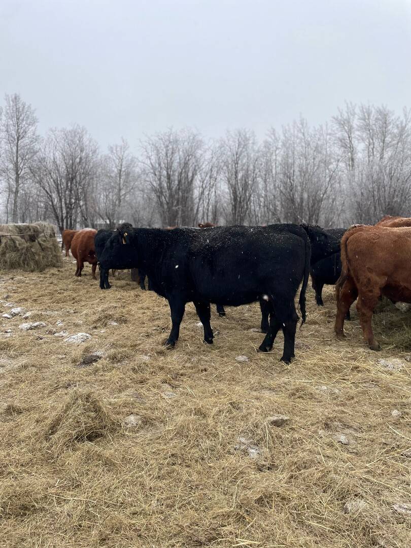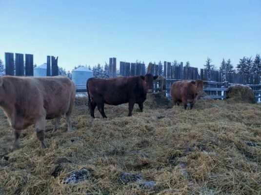 90 Angus and Angus cross cows bred back to low birthweight Charolais bulls to start calving April 1st. Lots of good young cows in this herd. Dave sold 70 of the old cows off last year and is only keeping a few of the red cows back. An honest set of cows to add to your herd.