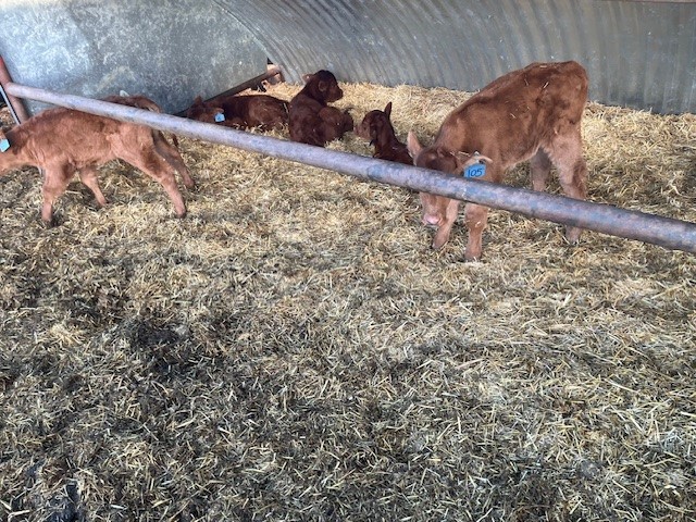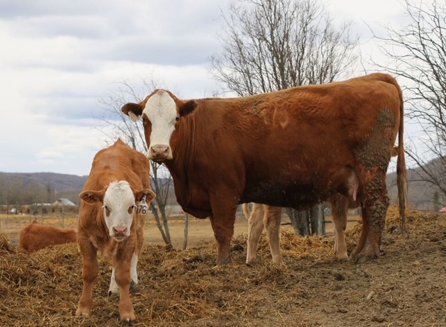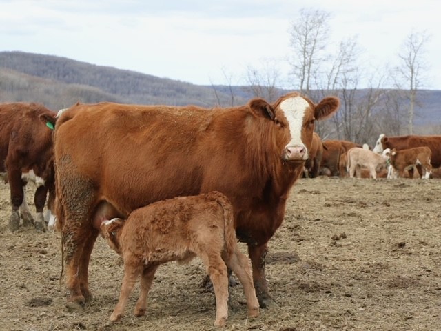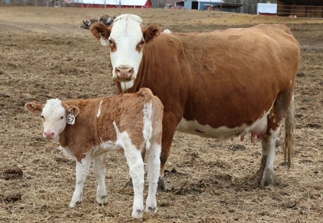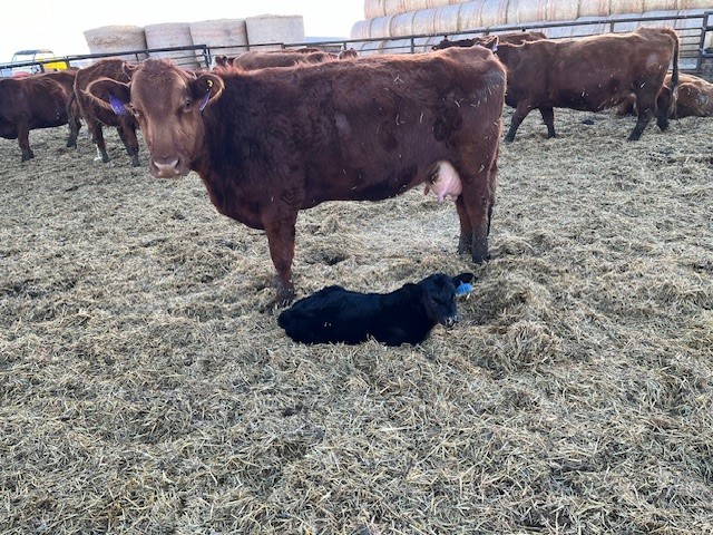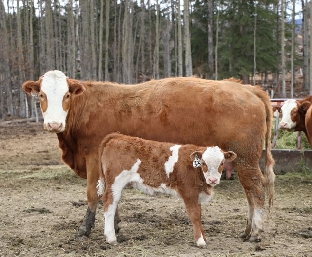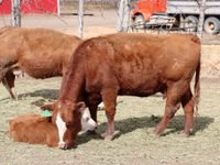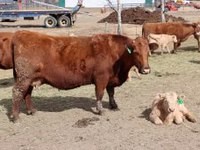 13- Quiet easy to handle, Red Angus Simmental X pairs with Charolais calves, one iron cows bought last fall. These cows were purchased from a family friends, who have perfected their herd for decades.