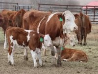 12- Home raised, easy to handle Simmental or Simmental Red Angus X Pairs, with Simmental calves.