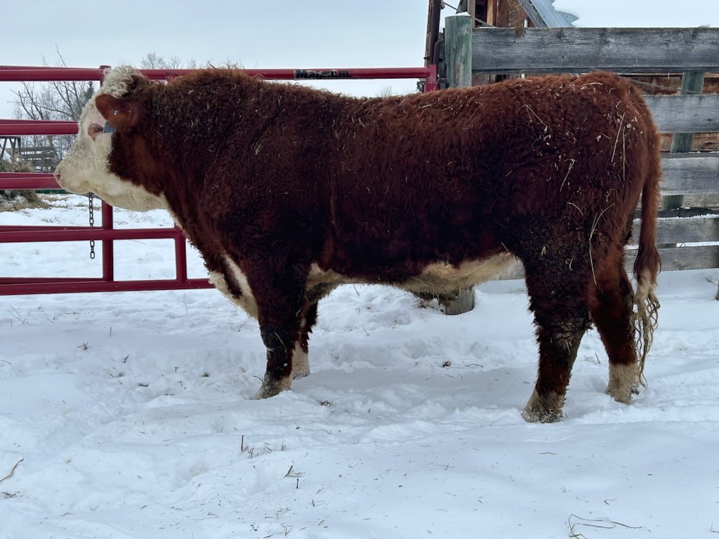 Horned Hereford 3 year old bull.