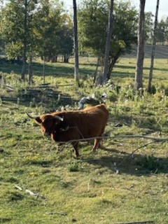 the one with no horns is Angus cross with no calf. Bulls out June 22
