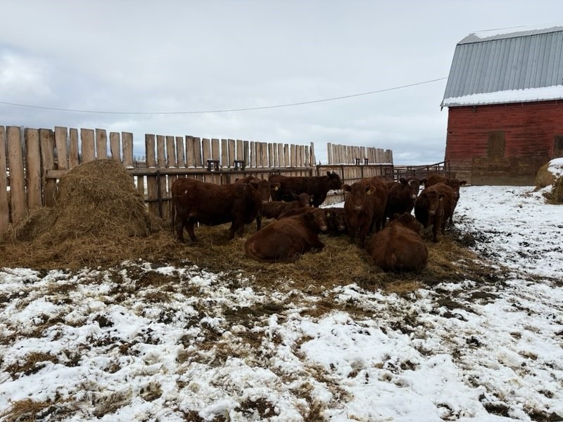 65 cows from Willingdon, Alberta. Bred to Angus, calving now.