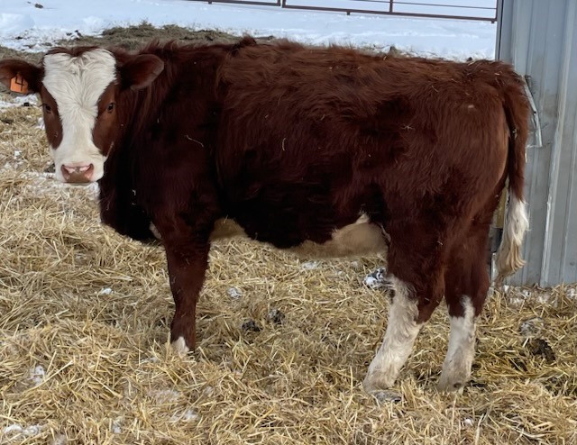 Mostly Red and black Simmental cross