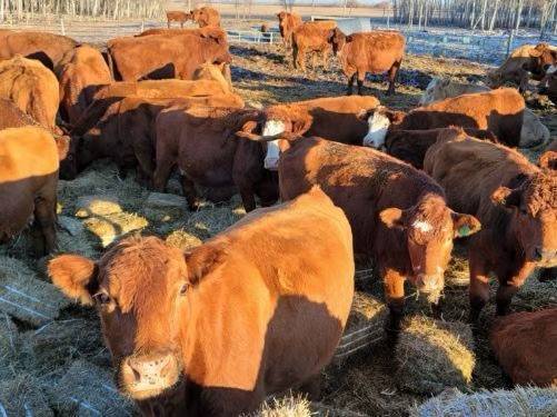 Great set of 50 super quiet red cows bred Gelbvieh for April calving.